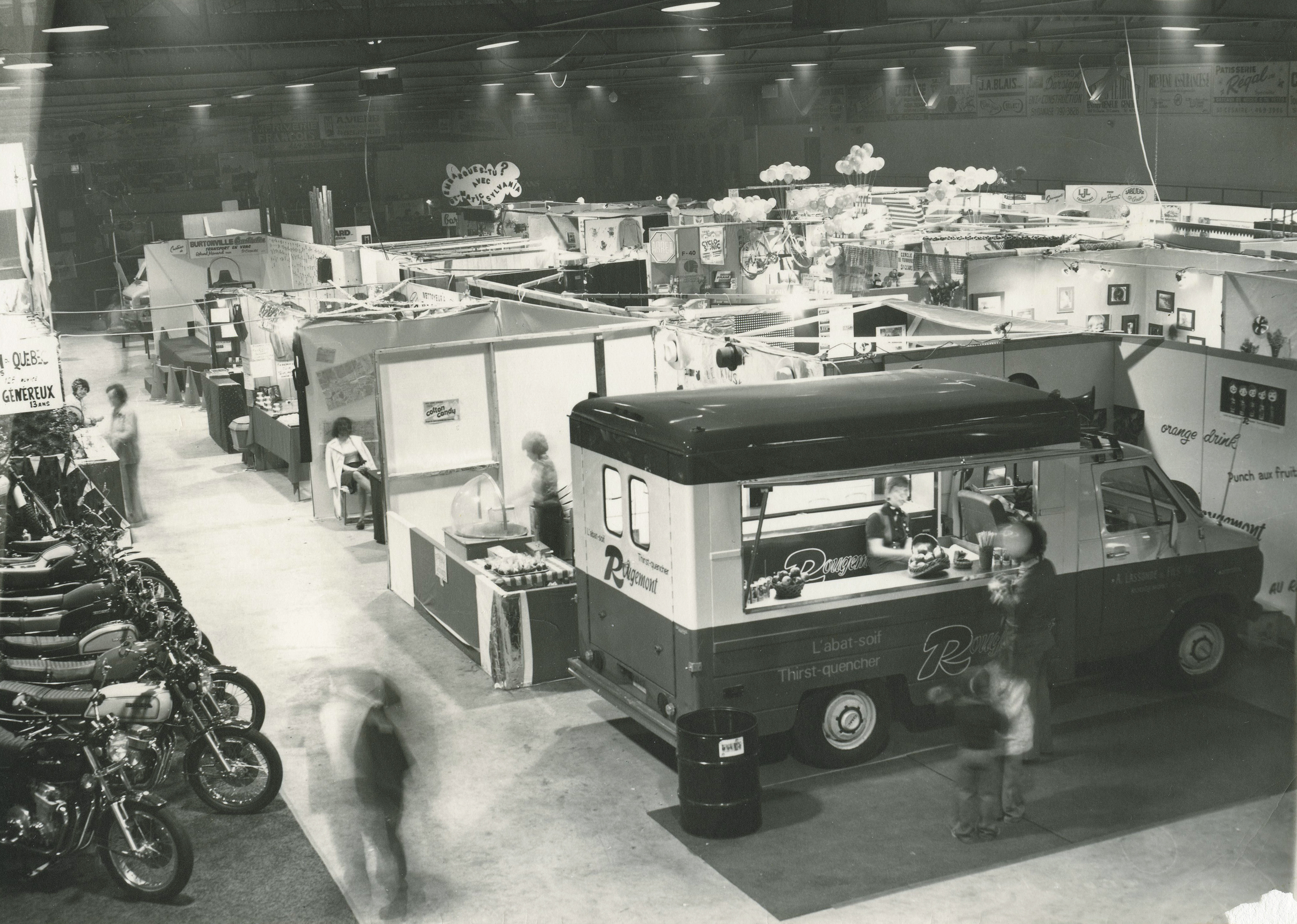 In the mid-1970s, a strange looking Ford truck took its place among Lassonde’s moveable assets. The interior had been refurbished. The vehicle now sported large horizontal windows and a long counter had been installed. The truck was equipped with a small refrigerator to keep the famous single-serve Rougemont fruit juice and drinks cold. Decked out on all sides with the brand logo, the company’s first mobile unit set off to conquer Quebec for Lassonde.