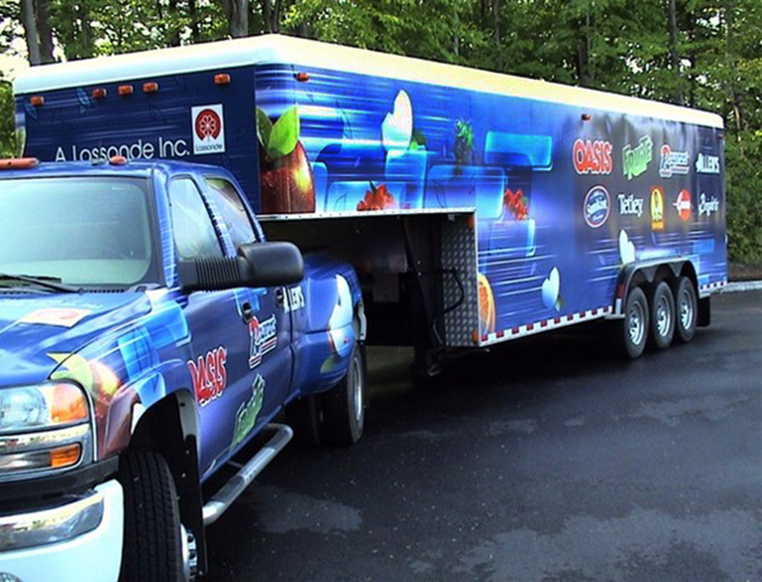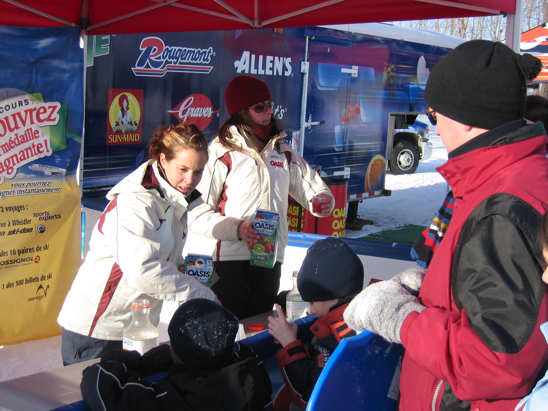 A decade or so later, Lassonde’s reinvented Ford truck was retired. It wasn’t until the beginning of the new millennium that a new mobile unit began travelling the roads of Quebec again. This time the ever inventive team at Lassonde transformed a trailer designed for transporting racing cars! Pulled by a car, this travelling trade booth was spacious, well-equipped and heated. From then on, Lasssonde’s tasting teams were able to introduce consumers to all the Company’s products year-round and they could even venture beyond Quebec’s borders.