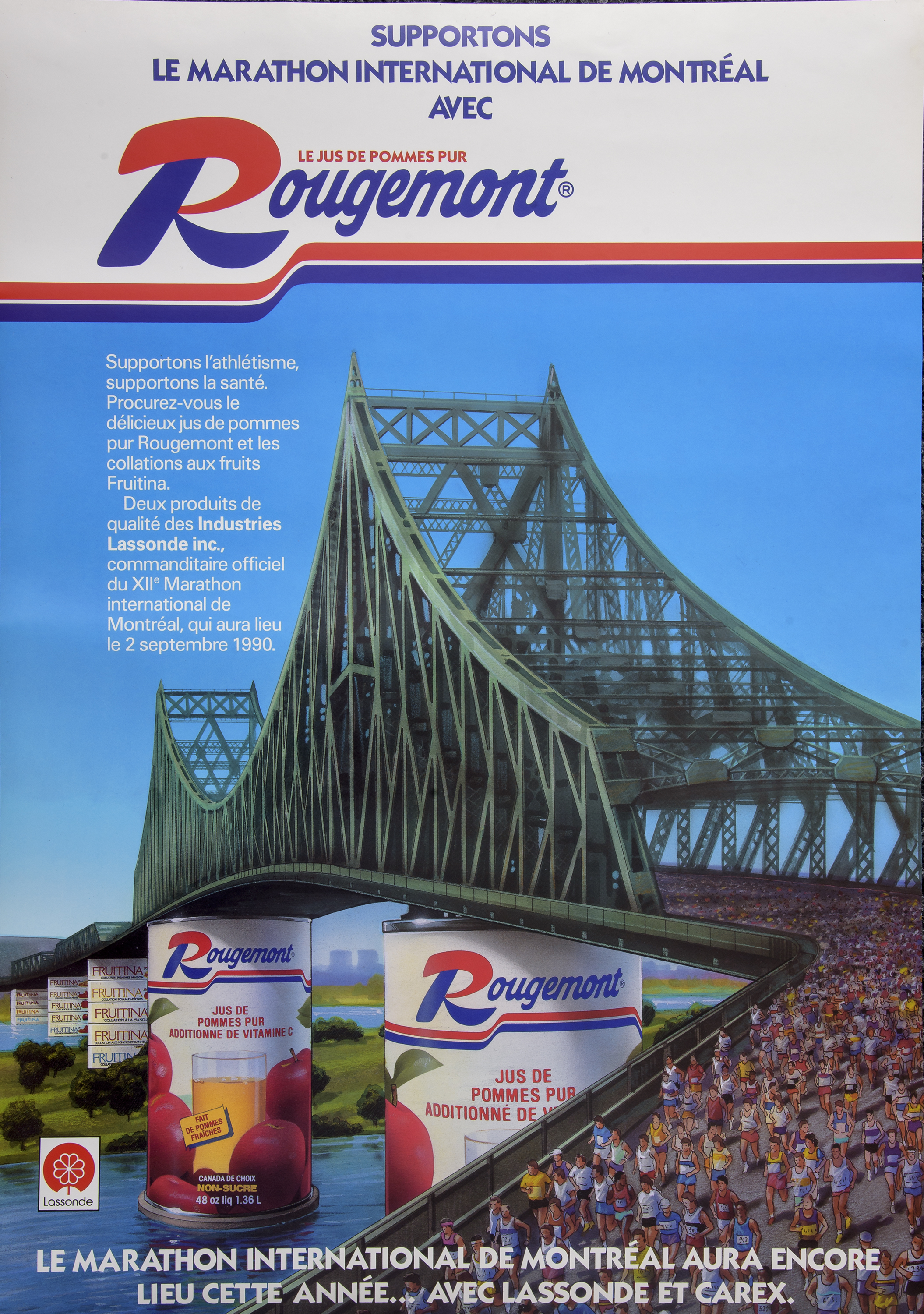 In 1990, after a 10-year run, so to speak, the Montreal International Marathon was in danger of disappearing. Its main sponsors had withdrawn. Approached by the organizers, Lassonde agreed to pick up the torch in partnership with Carex, a real estate company. Saved at the eleventh hour, the Marathon was held for another year or two. But jogging declined in popularity and the event was ultimately discontinued.
