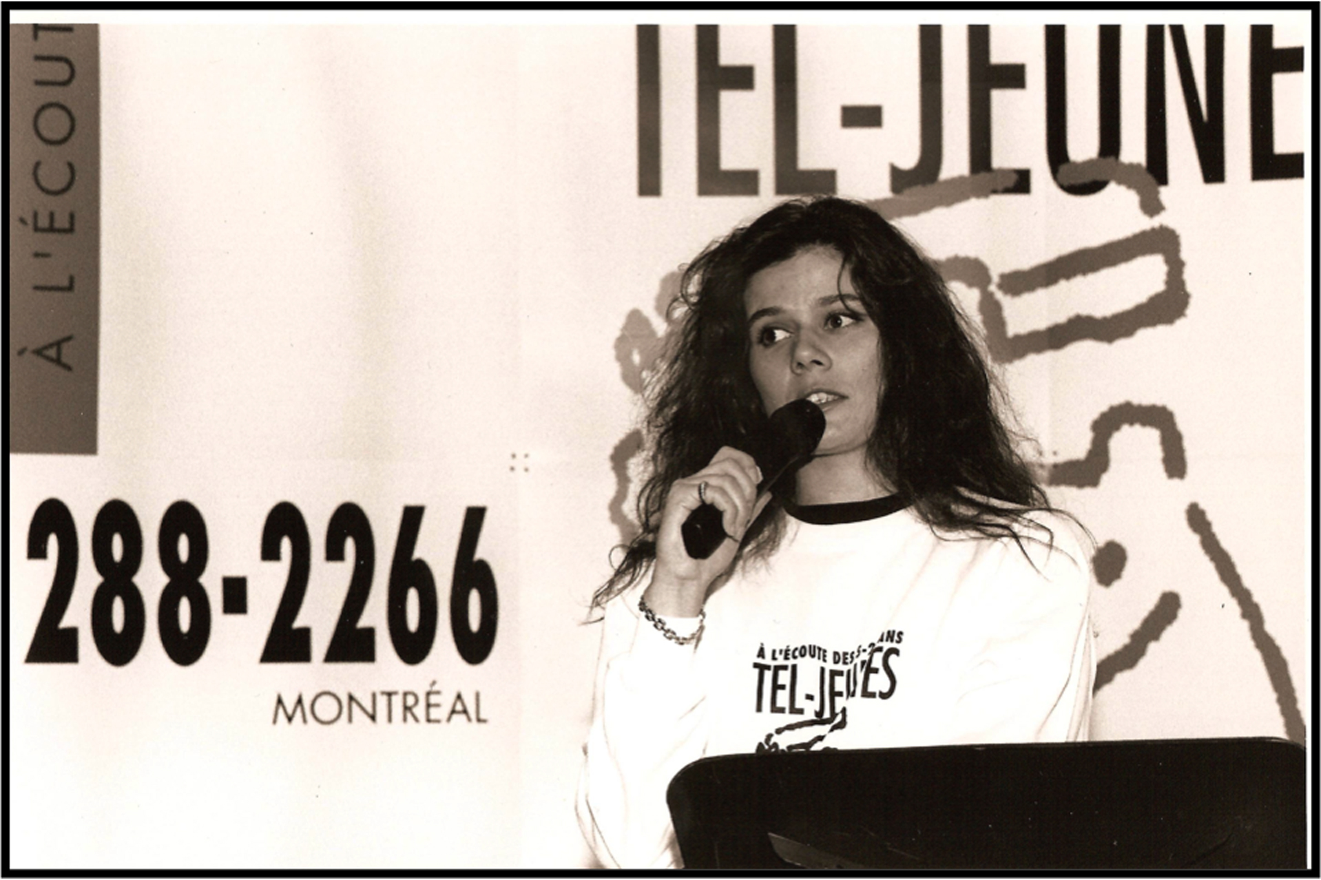 The then fledgling organization was the logical outgrowth of LigneParents, a hotline for parents which had been getting results. The founders, Jocelyn Paiement and Céline Muloin, decided to launch Tel-Jeunes based on the same model: a telephone hotline for young people throughout Quebec. The line is staffed with volunteers ready to listen to youngsters in difficulty, whether they want to talk about the loss of a beloved pet, being bullied at school, or conflict between their divorced parents. And the volunteers can refer them to other resources for additional assistance as needed. One of LignesParents’ most popular spokespersons was comedian and author Claude Meunier, star of the French TV series Lance et compte, while famed actress Marina Orsini was the spokeperson for Tel-Jeunes from the start. The missing ingredient for success was a sponsor ready to make a firm commitment to the project.