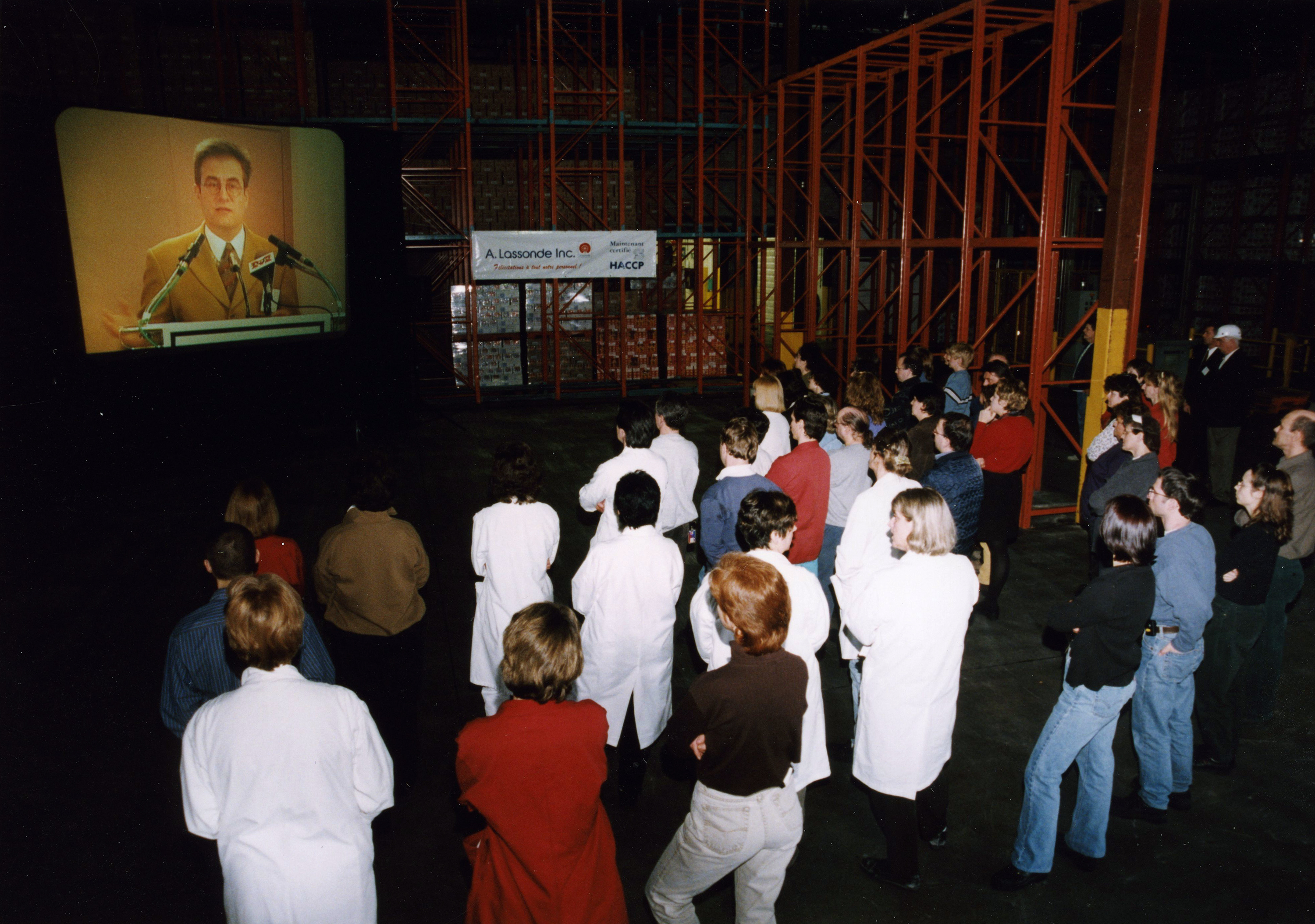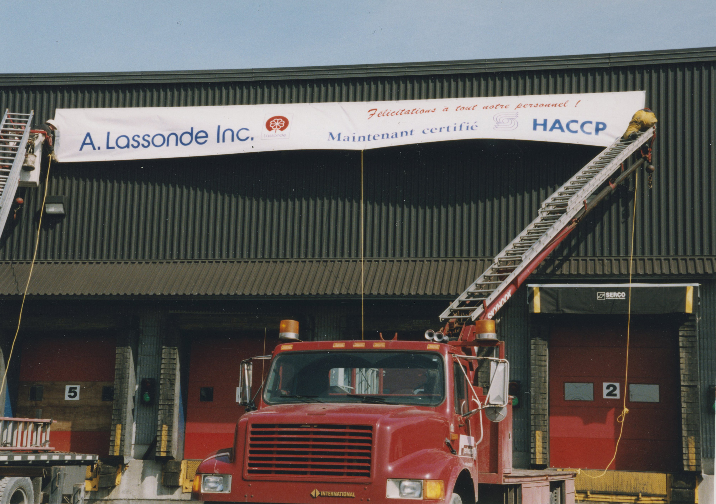 The official announcement was made with much fanfare to the entire Lassonde staff via satellite from the conference room at corporate headquarters, where the board of directors had assembled. Martine Girard related the visit by the inspectors, while a huge banner inscribed with the words “Certified HACCP” was hung high on the exterior walls of the two Rougemont plants.