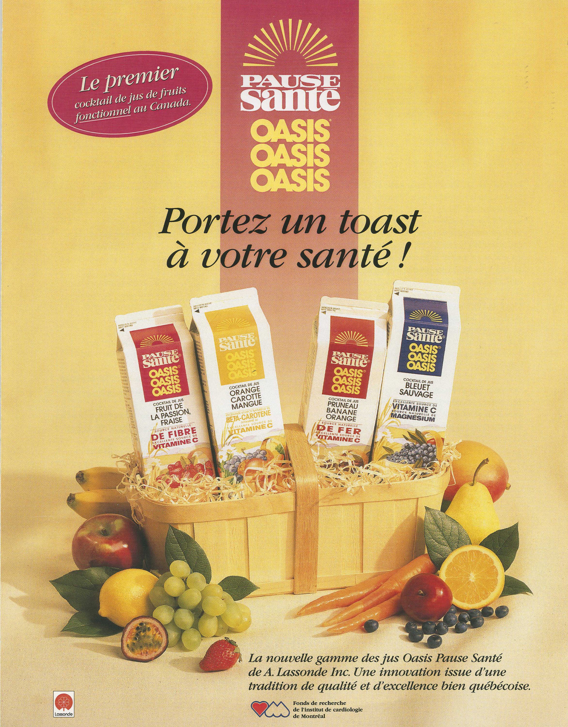 Au fil du temps, Lassonde continuera de développer et d’améliorer sa gamme Pause Santé. L’objectif : accroître la valeur ajoutée de ses produits à la lumière des plus récentes découvertes sur la combinaison des aliments. Aujourd’hui, Pause Santé comprend des cocktails de jus de fruits et de légumes qui préviennent le cholestérol, contiennent des omégas 3 et des antioxydants. Sans parler des autres gammes de produits Oasis fabriquées avec cette même préoccupation pour la santé et la qualité.