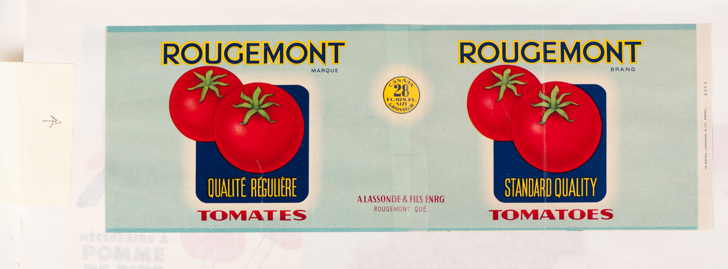 Aristide Lassonde fait donc affaire avec le vendeur ambulant d’un imprimeur commercial. Et Montreal Lithographing Co. Ltd. imprime par milliers la belle tomate rouge de la marque Rougemont, première marque officielle de A.Lassonde.