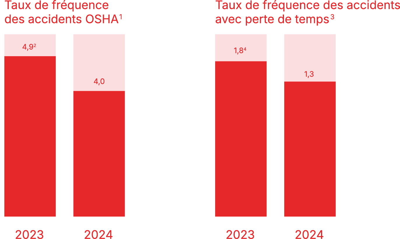 1 Taux de fréquence OSHA = nombre de lésions professionnelles ayant causé une